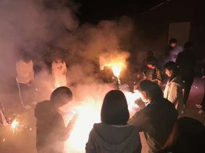 屋外でBBQの夕食の後、宿舎の方の案内で肝試しに行きました。