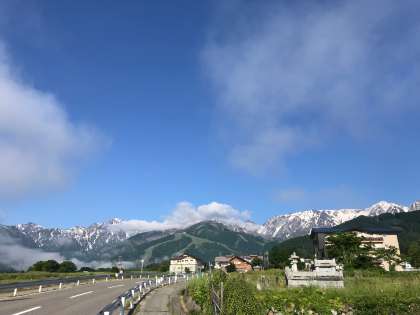 2日目の朝を迎えました。 晴れて白馬三山がよく見えています。