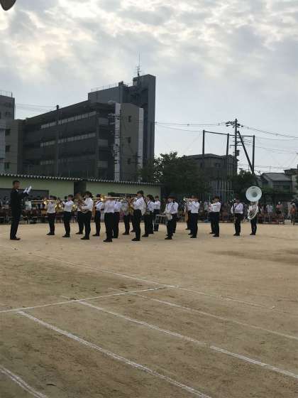 小中連携事業のひとつとして、開会式の入場行進などを例年演奏しています。