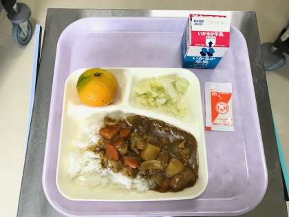 10月31日(木) ポークカレーライス、キャベツのサラダ、みかん、ごはん、牛乳