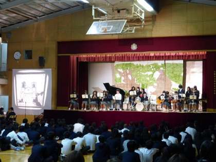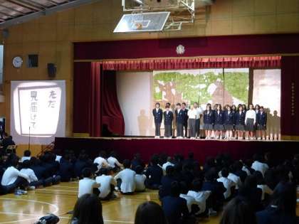 2年生の学年文化発表会は、今まで学習してきた道徳や来年の修学旅行で行く長崎をテーマに「音楽チーム(合唱、器楽合奏)」と「演劇・群読・ダンスチーム」に分かれて、31日(金)の文化発表会への出場を目指し、今まで練習してきた成果の全てを披露してくれました。