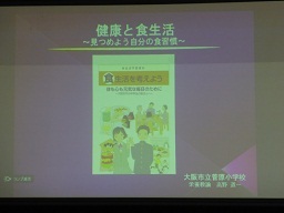 食育学習では、「健康と食生活〜見つめよう自分の食習慣〜」をテーマに、「成長を支えるカルシウム」「痩身(やせ)願望の害」「スポーツ前の食事の摂りかた」などのお話をしていただきました。