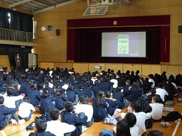 事後の生徒アンケートでは、「食生活の大切さが分かった」「小学生の時より、中学生の方がカルシウムを摂らないとダメ」「食事がスポーツに直結していることが分かった」「これからは食事のバランスに気をつけようと思った」「身長が伸びないのは自分に問題があったのだと思った」などを記述があり、高野先生の授業で、生徒自身が様々なことに気づいてくれたのがよく分かりました。