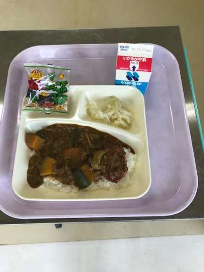 7月1日(水)*左 ごはん 牛乳 夏野菜のカレーライス