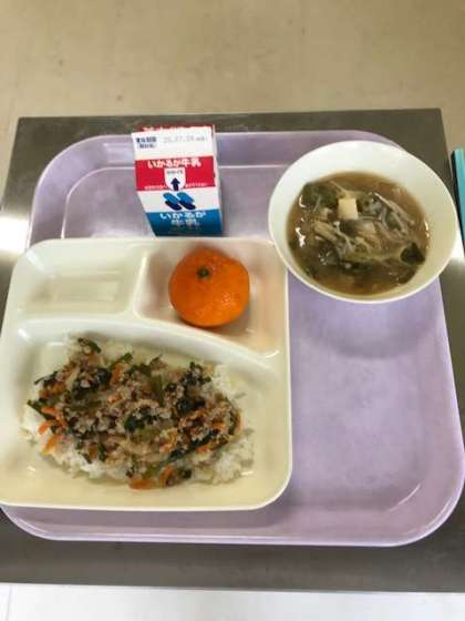 7月3日(金)*右 豚ミンチとニラのそぼろ丼 みかん(冷)