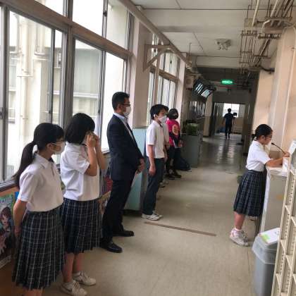*写真は校長先生、堀井先生の話の後、生徒会からの連絡の一場面です。