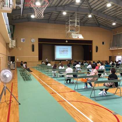 7月16日(木)15:30から体育館にて進路保護者説明会が開催されました。今年は感染症拡大予防の観点から体育館で3年生の保護者のみという、密を避けたかたちで実施させていただきました。