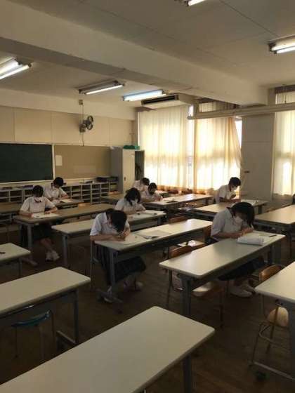 8月20日(木)に本校にて「漢字検定」が行われました。例年ですと「親子漢字検定」ということで中学生に限らず、小学生から大人の方まで受けることができるように実施していたのですが、今年は新型コロナウイルス感染症拡大防止対策の観点から、本校生徒のみの参加とさせていただきました。検定を受けた生徒たちは集中して受けることができました。
