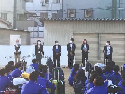 本日より三年生が修学旅行に出発しました。コロナウイルスの影響でこの時期の実施となりましたが、無事に出発することができました。例年よりバスの台数を増やす等、多くの感染症対策のもと、修学旅行を実施してまいります。