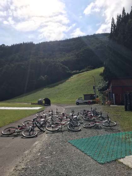 今から、それぞれガイドの方々に注意を聞いた後、マウンテンバイクのダウンヒルや、魚釣り、キャニオニング(沢登り)などを体験します。