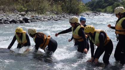 もっと上流に向かって、岩からジャンプをしたり、スライダーをしたりして、思いっきり大自然を楽しんでいます!
