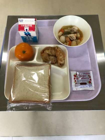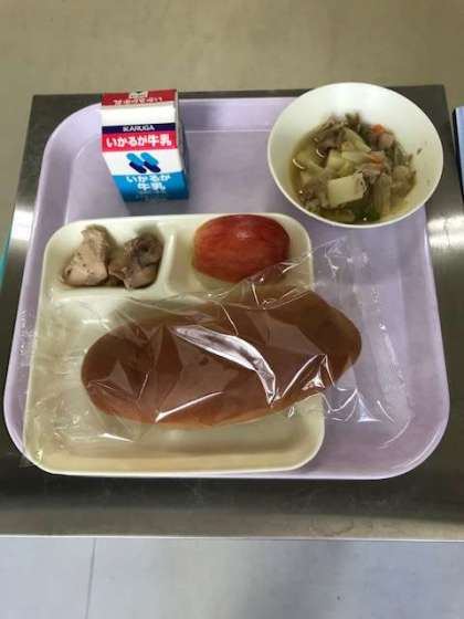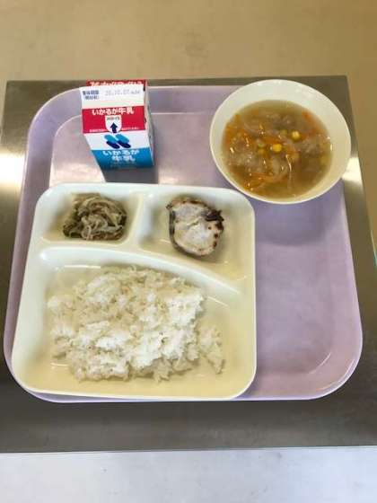 10月1日(木)*中 ごはん 牛乳 ウインナーと野菜のスープ