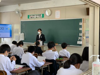 本日、実習生の濱田先生(社会科)・砂川先生(国語科)の研究授業が6時間目に行われました。お二人ともに今日まで学んできたことを懸命に生徒たちに授業を通じて伝えていました。生徒たちも6時間目でしたが、頑張る実習生に応えるように集中して頑張っていました。