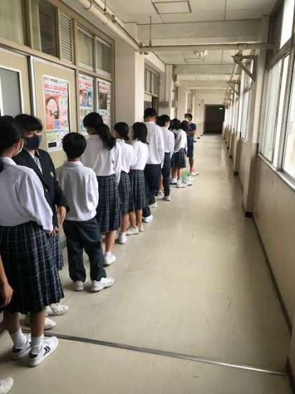 昨日、10月22日(木)の5・6限に3年生全員と1年生の3クラスが眼科検診を行いました。コロナ禍での眼科検診ということで今までとは違って検診方法で行われました。昨日検診できなかった生徒さんは次の検診で受けてください。
