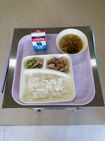 4月26日(月)*右  ごはん  牛乳  鶏肉のからあげ  中華スープ