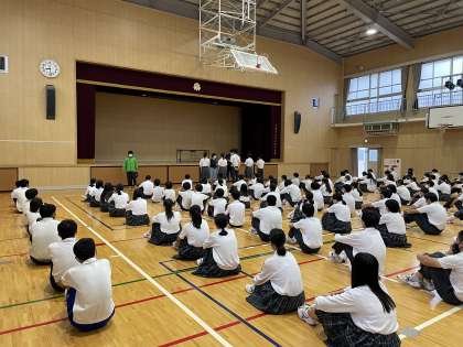 次に校長先生よりお話があり、熱海土砂災害の話、オリンピックの話がありました。