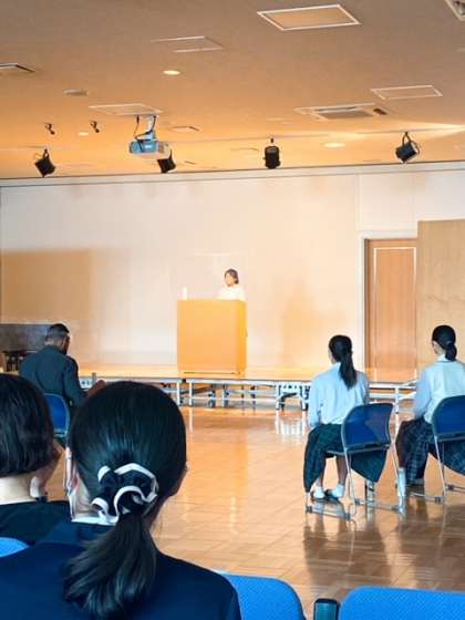 先週になりますが、10月2日(土)に、大阪市長杯中学生英語暗唱大会が行われました。本校からも3年生の女子生徒が参加しました。暗唱して話すことは日本語でも難しいことですが、英語になると更に大変だと思います。そんな中でも堂々と暗唱を披露してくれました。