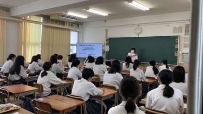 本日3年5組の教室にて、教育実習生が保健の研究授業を行いました。「薬物」についての授業でしたので難しいことも多かったですが、生徒たちは積極的に参加していました。