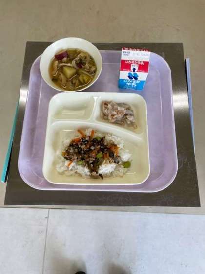 10月 8日(金)*左 ごはん 牛乳 ピリ辛丼