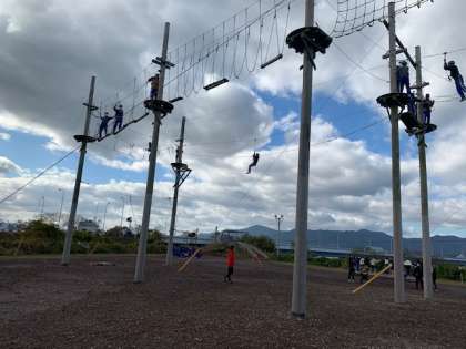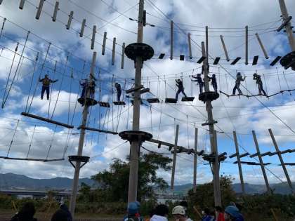 びわこスカイアドベンチャーに到着し、アスレチック体験がスタートしました。