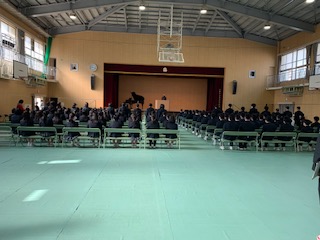 初日は、卒業証書授与の返事が小さかったりしましたが、今日の練習では、意識して大きな声で返事をしようという意識がみられました。本番は、更に良い返事が聞けることと思います。
