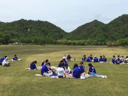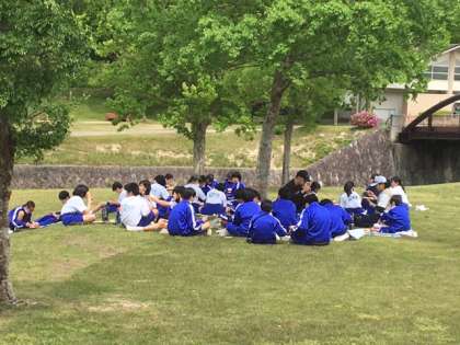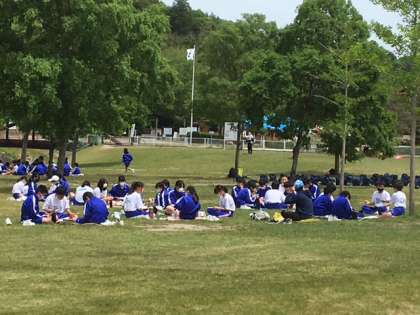 2日間最後の締めくくり、クラスごとにお弁当を食べています。