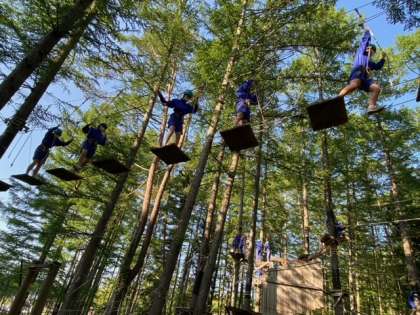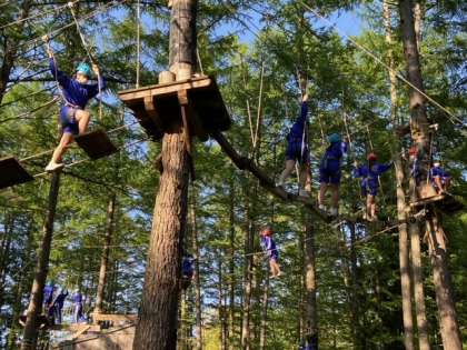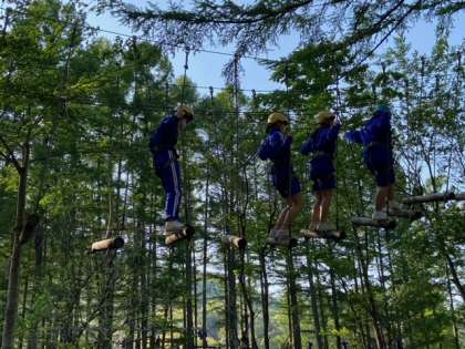 「怖い〜!」「揺らさんといて〜」「がんばれ〜!」の声を森中に響き渡らせながら果敢な挑戦が続きます。