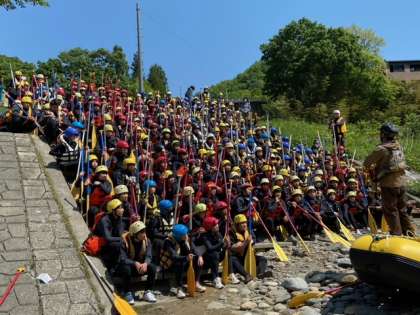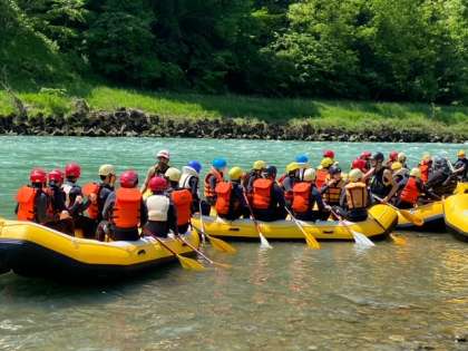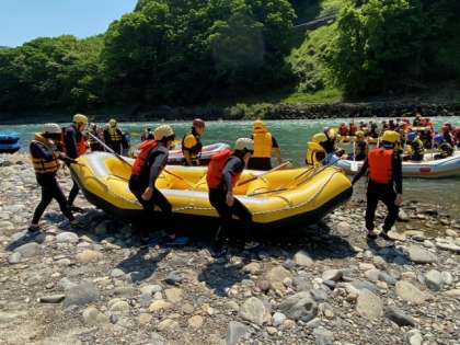 ラフティングが始まりました。気温もグングン上昇し、水しぶきがとても気持ちよく感じられます。