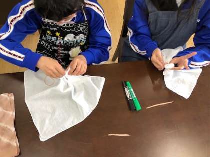 とんぼ玉、草木染の様子です。熱心に取り組んでいました。