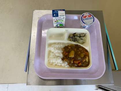 カレーライスは大人気のメニューで、いつも食管が空っぽになります。しっかり食べて、午後の授業も頑張りましょう。