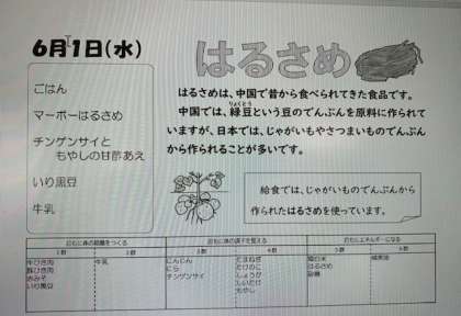 今日から6月です。梅雨の季節になり、食欲が落ちがちですが、しっかり食べて体調管理に努めましょう。