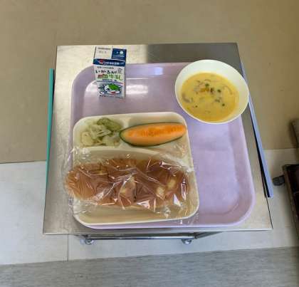 大ぶりにカットされたメロンだったので、美味しそうに食べていました。