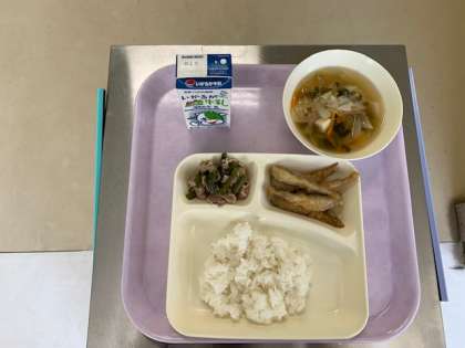 今日の給食には、「いわし天ぷら」がありました。