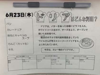 今日の給食はドリアです。
