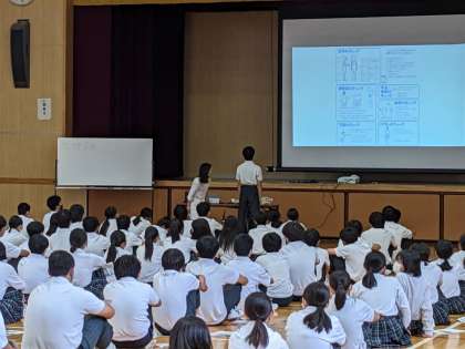 本日三年生は、姿勢調整師会より増田彩加先生を講師に招き、姿勢教室を行いました。正しい姿勢の大切さなどを、実際に体を動かして自分たちの姿勢をチェックしてみたりと楽しく学ぶことができました。