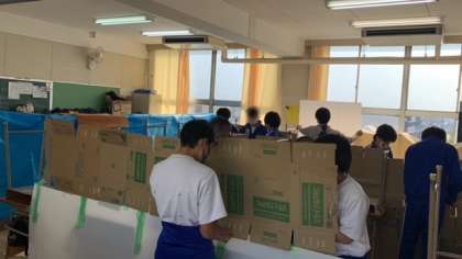 4班に別れ、「避難所作成班」「救護班」「食糧班」「消防班」で活動しました。