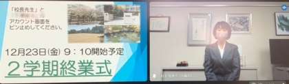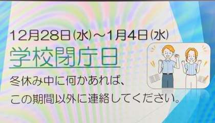 明日から冬休みに入りますので、冬休みの過ごし方を考えるようにしましょう。とのお話がありました。