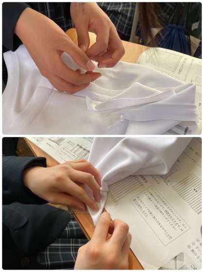 SDGs取り組みとして、ランチョンマットの製作に取り掛かっています。カンコー制服さんからいただいた体操服用ニットを利用しています。