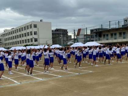 早朝より、大勢のご来賓、保護者の皆様にご来校いただき、第48回体育大会、開会しました。笑顔輝く1日になりますように。