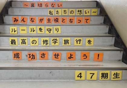 修学旅行成功をめざし、実行委員のメンバーが協力して活動をしています。
