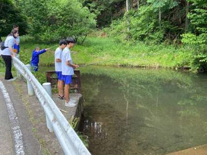 自然豊かな山を背に、ゆっくり魚釣りを楽しみました。