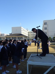 副校長先生からは、「絆(きずな)」についての話があり、今週に行われる文化発表会への取り組みを通して、より一層、絆を強める機会として欲しいという励ましがありました。