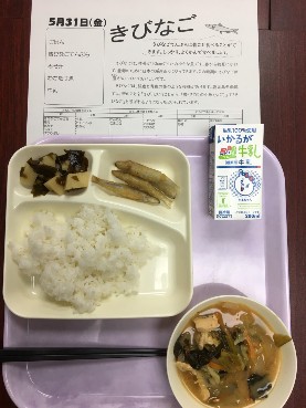今日の献立にある「きびなごてんぷら」は、骨ごと全て食べることができます。