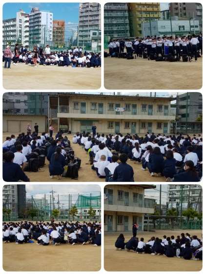 教頭先生のお話のあと、生徒代表あいさつ、持ち物・職注意がありました。