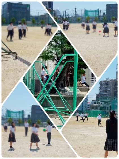予報通り日差しが強くなり、太陽が眩しかったですが、バレーボールなどで遊ぶ生徒もいました。
