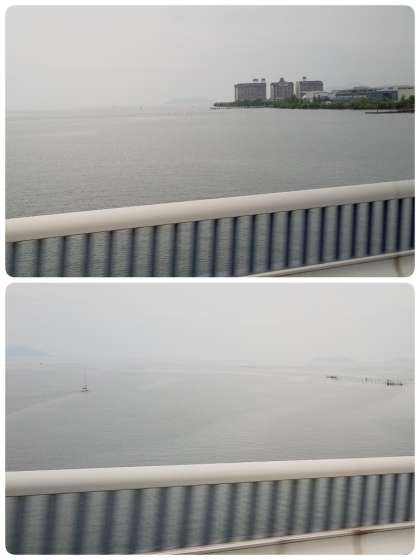 6月17日(月) 琵琶湖 大きな琵琶湖を渡って、びわこスカイアドベンチャーに向かいます。