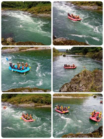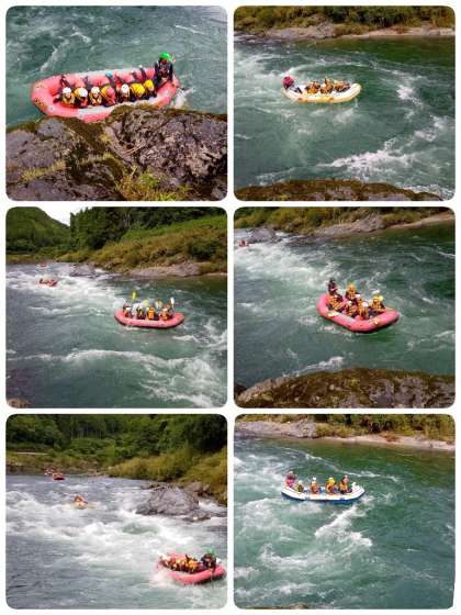 ラフティング(後半)のコースで、最も流れが急なポイント付近です。