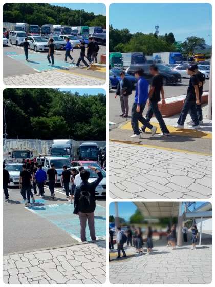 次のトイレ休憩時に、帰校予定時刻も併せてお知らせいたします。