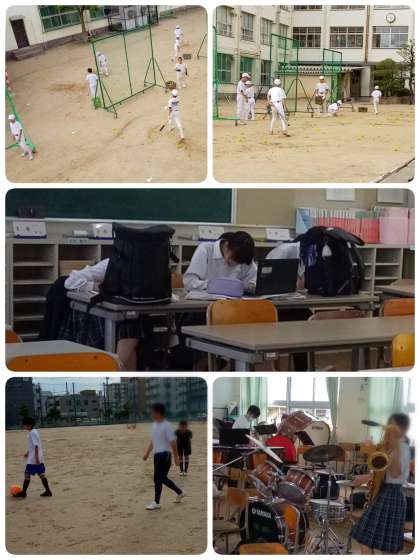 非常に湿度(しつど)が高くて「蒸して」いますが、元気アップの放課後学習会や、文化系・運動系の部活動で、それぞれ頑張っています。
