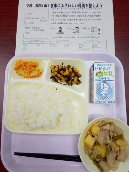 生徒の皆さんも、食前の手洗いを徹底するだけでなく、教室を「明るく清潔な食事の場」とするよう、整理整頓(せいとん)にも協力し合ってくださいね。